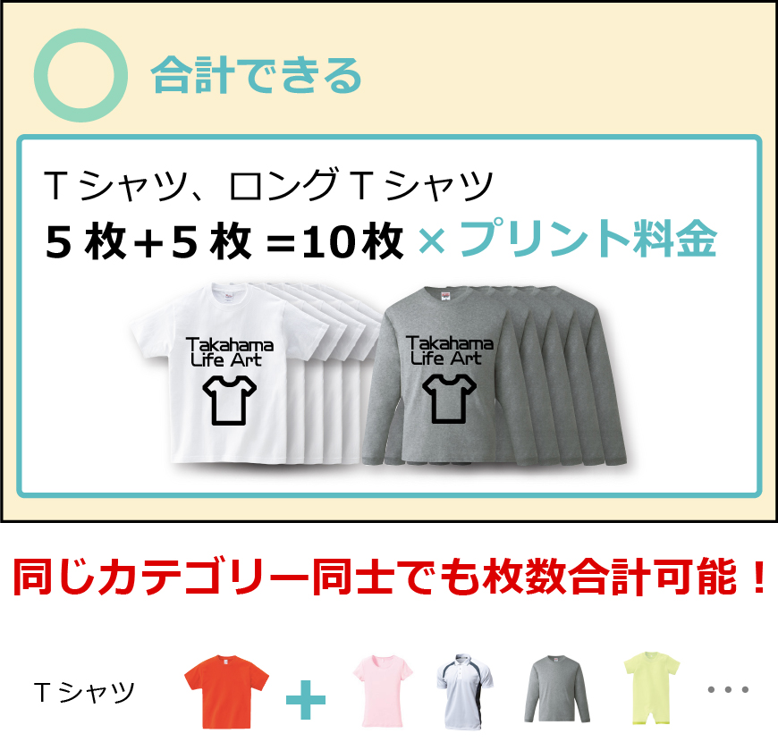 ※同じデザイン(同じプリント箇所)の場合に限ります。