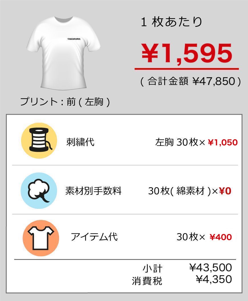 刺繍の元となるデータ(設計図)作りの費用です。専用ソフトで一針一針、縫い目(角度や縫い間隔)を手作業で決めていきます。一度作成すれば追加注文の際には型代がかかりません。弊社所有のの書体をご利用の場合もこの作業がないため型代が無料になります。